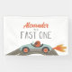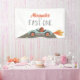 Fast One Race Car 1st Birthday party banner with blue retro race car.