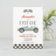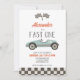 Fast One Race Car 1st Birthday Invitation with blue retro race car.