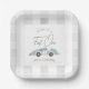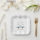 This cute and retro "fast one" boy's 1st/first birthday paper plate features a white background with a light blue race car. Personalise it for your needs. You can find matching products at my store