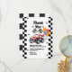 Send high-speed thanks with this boys’ racing-themed thank you card! Featuring red, blue and orange accents and chequered flags, it’s perfect for race car or “fast one” birthday parties.