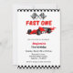 Birthday party invitations from Fast One feature a red automobile. This adorable race car-themed birthday party is for a first birthday and features the words "fast one" and a picture of a red vintage car.