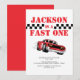 Fast One Modern Red Race Car Boy 1st Birthday Invitation