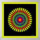 Looking at the centre of the image gives the perception of rotation. Moving optical illusions are usually created by adding black and white shadows around the shapes. Here I tried to do it by using the perception of pulsation, without shadows.