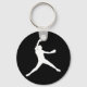Keychain with a silhouette of a softball pitcher in action. Available in different colours and on other products at my store.