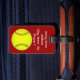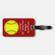 Cute fastpitch softball luggage tags or equipment bag tags that can be customised with your team colours using front and back background colours or font colours. Customise with your name, address, team name, or player number by changing the template text.