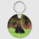 Fat Black Bear and Wild Grasses Wildlife Art Key Ring