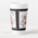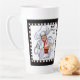 Fat French Chef Latte Mug add your name. Jolly French chef by artist, Patricia Villa, with black and white checks on white background. Cute mug perfect gift for your favorite chef.