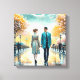 Pretty ai watercolor art. A man and woman passing each other in the London street brushing hands as they pass. A romantic chance meet.