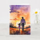A father walks with his little girl across a flower-filled field towards a setting sun in this beautiful Father's Day card.