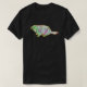 I give wanted to give this a 4 instead of a 5 because these Basic DARK T0shirts run unexpectedly SLIM or Narrow. Which is great if you do not have a potbelly, but I have a paunch. It isn't the shirt's fault that I've got a beer belly. The design and shirt itself is a quality cotton shirt. The color is more of a deep purple, but still a very pretty color. The Basic DARK T-shirts run a bit SLIMMER than the Basic Ts. The neck is a fraction narrower (or seems to be narrower) also. I'm a paunchy middle-aged woman and my neck is 12 inches (31cm) thick and the neckline fell about the same as in the photo of the man, and I had the desire to tug it a bit. So if you're a thick necked man or like loose shirts, be aware these are slimmer shirts. Once I get rid of my lockdown paunch it'll look great. The shirt washed well in cold water with no apparent bleeding. We don't have a dryer, so it hung dry. Did not shrink. Love the colors and the design. The design looks smaller on my shirt than it does on the model on-line. But still, it looks good on the shirt. The printing looks as it does on the model, just the size seems fractionally smaller. Washed garment in cold water, hung dry and design appeared unaffected.