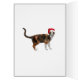 A funny Christmas card showing a calico cat standing on hind legs and playing with a red ball decoration on a Christmas tree. Inside the card is a picture of a cat wearing a Santa Hat. A fun card to send to cat loving friends or family.