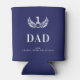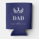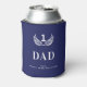 A can cooler for the world's best dad, father. A navy blue background. Decorated with a white victory wreath and numer 1. Personalise and add your names (kid's name)