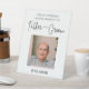 This elegant memorial photo wedding pedestal sign is a beautiful way to remember and pay tribute to the Father of the Groom on the wedding day. Place this on the chair he would have sat in at the wedding.