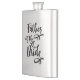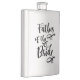 The product is a good size and came exactly as it was pictured. The lid is not attached to the flask, which could be dangerous on drunken nights... The print came out surprisingly well and looks very sharp. Would definitely recommend.