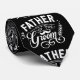 Father of the Groom Black and White neck tie for dad to wear on his son's wedding day. Subtle design that surprises when you get up close and see it says Father of the groom with moustache.