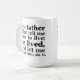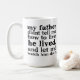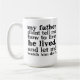 Father Quote Coffee Mug makes a great father's day gift! It reads: "My father didn't tell me how to live; he lived, and let me watch him do it."