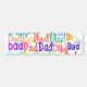 This bumper sticker has the word “Dad” repeated in different fonts and different colours across the whole design. Fun and bright.