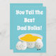 A funny Father’s Day flat card with egg cartoon characters and a blue background. The front of the card says “You tell the best Dad yolks!” and the inside says “They are eggcellent! Happy Father’s Day”. The words can be customised.