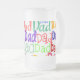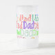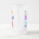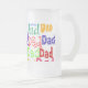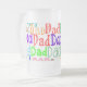 This frosted beer mug has the word “Dad” repeated in different fonts and different colours across the whole design. Fun and bright.