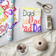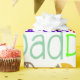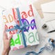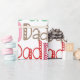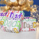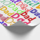 This wrapping paper has the word “Dad” repeated in different fonts and different colours across the whole design. Fun and bright.