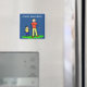 Father and son hold hands. The dad's shirt reads "daddy" and the little boy's reads "me". The family has black hair and light skin. The image comes in multiple ethnic versions. There is also a no colour drawing version too. Add your customised family name to personalise the magnet. Add a custom message for a special father or daddy magnet! You can make a personalised fridge art magnets for a special Father's Day gift, new Daddy, Family Reunion or other customised family art gifts!