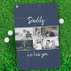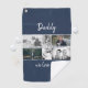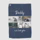 Blue Father with Kids and Family Dad Photo Collage Golf Towel. Collage of 6 photos, father`s name with a sweet message in a trendy script and names of children that overlay the photos. Add your 6 favourite family photos. Sweet keepsake and a gift for birthday, Father`s Day or Christmas for a dad, new dad or grandfather.