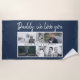 Father with Kids Family Dad 6 Photo Collage Beach Towel. Collage of 6 photos, father`s name with a sweet message in a trendy script and names of children that overlay the photos. Add your 6 favourite family photos. Sweet keepsake and a gift for a birthday, Father`s Day or Christmas for a dad, new dad or grandfather.
