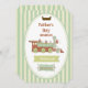 Fun retro look train engine with striped background. Card back has matching design. All text on front and back is ready for you to customise with your party event information.