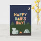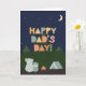 Father's Day's Day Card for Dad. This cute outdoorsy Father's Day card is perfect for any Dad who loves camping, nature, the outdoors, and looking up at the stars in the night sky with his kids. The Father's Day card features a father bear and a child bear sitting outdoors by a campfire and tent in the wilderness looking up at the stars in the sky and the mountains. The cute Scandinavian-style text reads: Happy Father's Day, Dad!