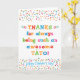 Make this card customisable! Click "Edit Design", "Inside Bottom/Right: Text & Images", "Text", and "Add text" to write your own custom, personalised message to Táto inside!