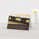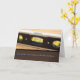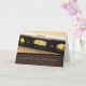 Father's Day for Father-in-Law greeting card features a photo of levelling tool, level on a hardwood pine floor. Blue letters with dropshadow on brown background for front verse. Inside sentiment reads "You're the best!" Happy Father's Day.