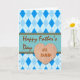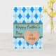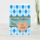 Father's Day for #1 Dad, diamond argyle design with faux wood heart. Father's Day paper greeting card with argyle design in shades of blue. A faux wood heart is also featured. Modern contemporary design. Argyle element courtesy of KArnold/publicdomainpictures. Image and verse copyright © Shoaff Ballanger Studios.