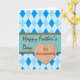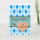 Father's Day for #1 Grandpa, diamond argyle design with faux wood heart. Father's Day paper greeting card with argyle design in shades of blue. A faux wood heart is also featured. Modern contemporary design. Argyle element courtesy of KArnold/publicdomainpictures. Image and verse copyright © Shoaff Ballanger Studios.