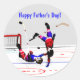 Stickers with my artwork of 2 hockey players in the middle of a hockey game, fighting for the puck. Text says "Happy Father's Day!"