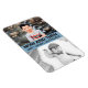 Elegant and modern fridge magnet for dads on father's day featuring two personalizable pictures with a light blue stripe between them. Put an actual color photo on the upper part, and a black and white old/newborn one on the lower part (black & white effect is automatically applied). The customizable wordings between the pictures read Now and then, happy father's day, and your son's name.