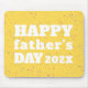 Happy Father's Day and the year is written in bold white text. It really pops against a paint splatter pattern on mustard yellow.