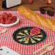 Father's Day paper plates with Dartboard and Dart in beige, red and black with red dart. Thanks to Commercial Use Scraps for some of the elements in the design.