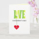 Send LOVE on Father's day. This bright modern design has LOVE in yellow-green colored capital letters with a pattern of white stars, and there is a red heart hanging from the L.