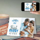 Personalised Father's Day Photo Card. Cute typography design with casual handwritten lettering and a modern colour palette of blue and dark green. The photo template is ready for you to add your favourite photo and you can also include a personalised message inside. DADDY can be edited to DAD or PAPA if required.