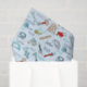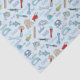 Illustrated collage of common shed and gardening tools on Father's day tissue paper.