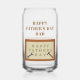 This awesome can glass features a digital art image of a wooden desk with a group of wooden letters on it that spell out the words Happy Fathers Day. Each of the letters has a series of nails hammered into it. There is also a spanner on one side of the sign and a hammer on the other side. A great design for any handyman Dad who loves to make things. There is custom text so you can include a message of your choice.
