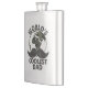 The product is a good size and came exactly as it was pictured. The lid is not attached to the flask, which could be dangerous on drunken nights... The print came out surprisingly well and looks very sharp. Would definitely recommend.