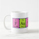 Faustine spelled out as F Au S T I Ne (Fluorine Gold Sulphur Tritium Iodine Neon) on a mug for the scientist in you.