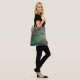 Designer Holly Willner delivers this optical illusion in deep patina look of ristic metals, with embossed grooves, flourishes. Fabric cross body bag looks like expensive artisan leather or sculpted metal.