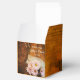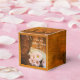 Customize the rustic chic Faux Barn Wood Pink Daisies and Cowboy Boots Wedding Favor Box with the personal names of the bride and groom and marriage ceremony date and fill with the party favors or small gifts for your guests. These casual yet classy custom ranch theme favor boxes feature a quaint digitally enhanced floral photograph of brown wood grain, pink daisy flower blossoms, brown leather western cowboy boots and a white bridal veil. Perfect for a informal and elegant engagement party, bridal shower or marriage theme.