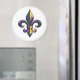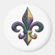 A "faux" beaded Fleur de lis in purple, green & gold on a round magnet to add to your collection of New Orleans memorabilia.