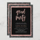 Faux Black and Rose Gold Glitter Grad Party Photo Invitation