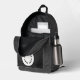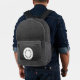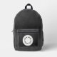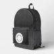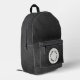 A backpack with a faux black leather background with space for your logo
