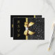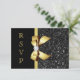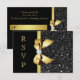 Faux Black Sequins Gold Bow RSVP Card