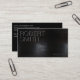 A modern, simple business card with a faux black worn leather background on the front and space for your name, profession, social media handle, website, mailing address and phone number.